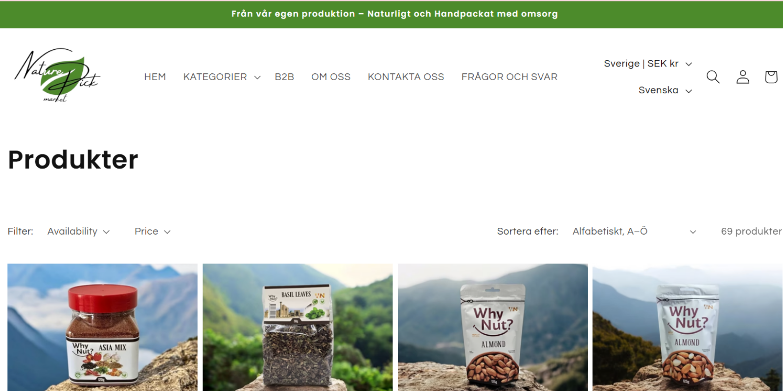 Vilken typ av produkter erbjuder Nature Pick Market?